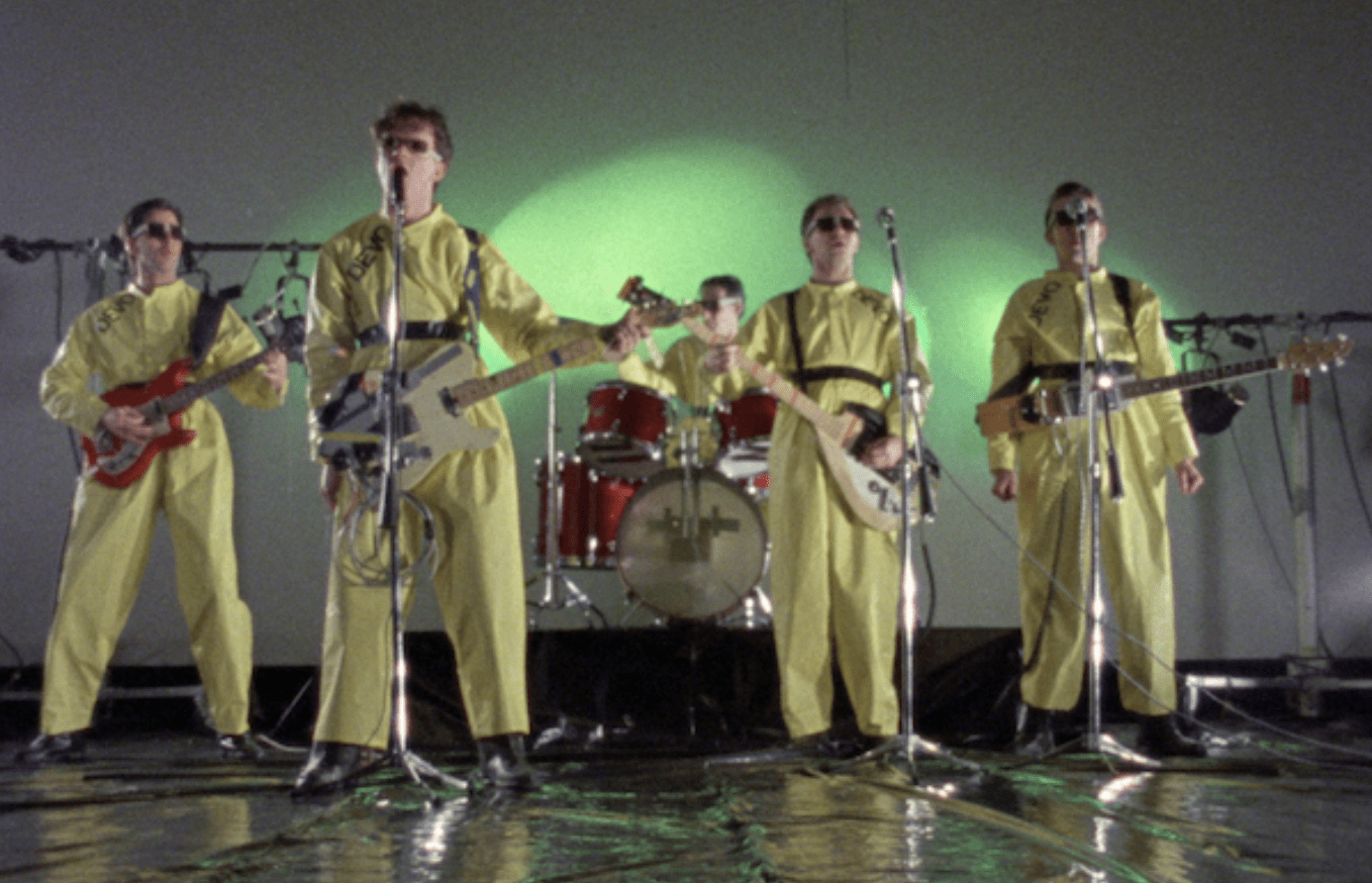 Early in the film, a quote plays over the images, “If the captain says the ship is sinking, you don’t call him a pessimist if it is.” Devo may have presented their view of the world with humor and a quirk, but upon further investigation, their harsh view of their day emerges. Take their 1980 single “Freedom of Choice,” which includes the lyric:
