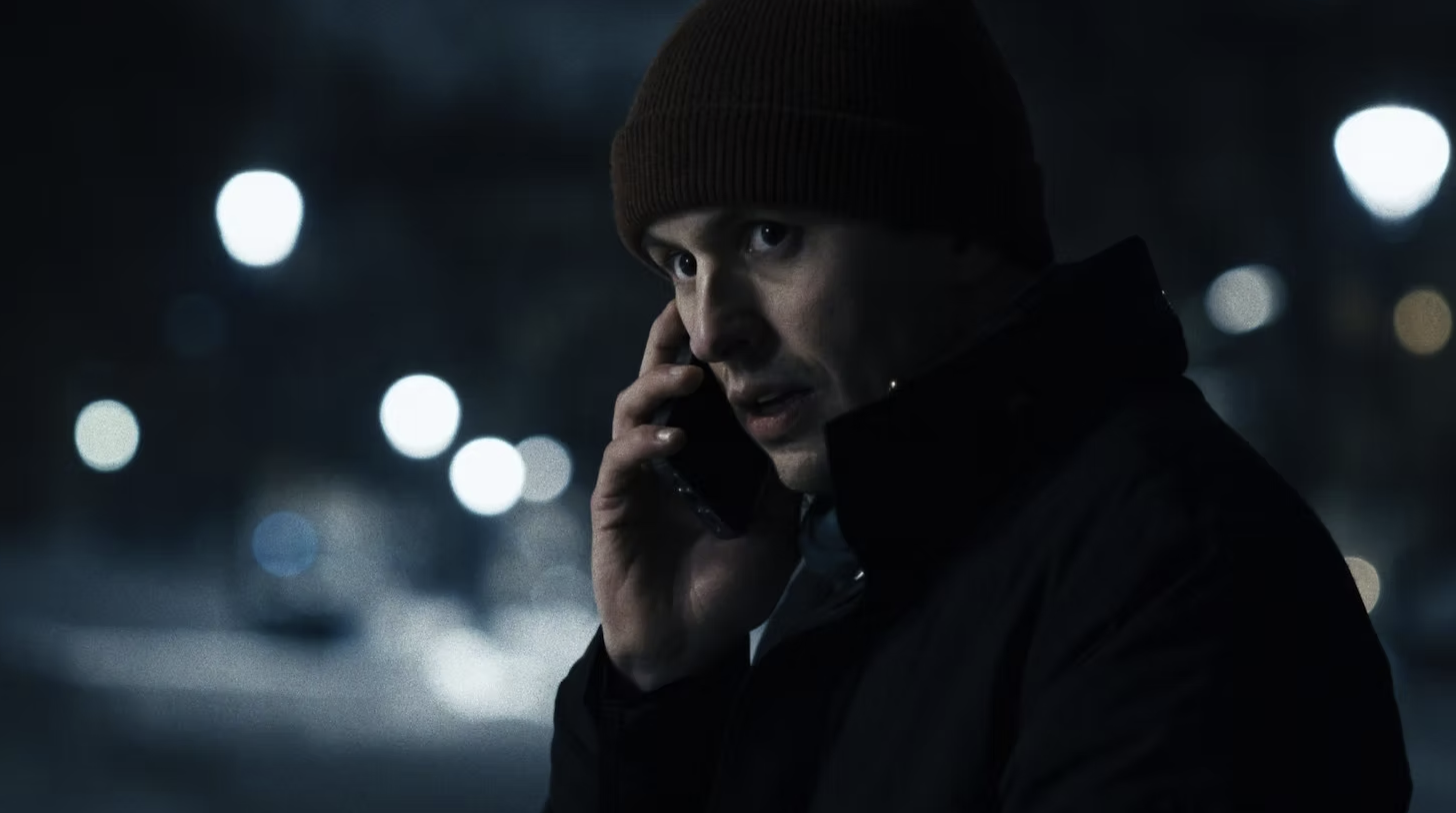 “One thing I’m sure every director will tell you is that you cannot control the weather,” he says. “We had scouted the film in December before we shot it in January, and there was no snow. We storyboarded it, and our main concept was finding pockets of light and use shadow light in all directions. That gives you some characters always in light and some always in shadow as they are surrounded by these pockets. After the snow came in, it melted, so suddenly we have this sludge weather–it’s so inhospitable and oppressive. It’s the worst feeling in the world. We realized that we could lean into that. The exterior of that day was the city of Oslo at its worst. You don’t want to be out there, and you don’t want to be forced into any encounters. It’s just people in black clothes, huddled, trying to get out. I wanted every stop in Kristian’s night to be uncomfortable.”