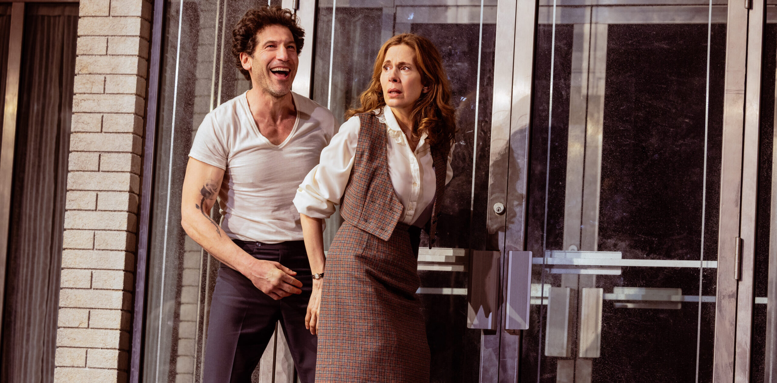 Directed with a deliberate (I hope), anarchic style by Olivier Award winner Rupert Goold (King Charles III), Dog Day is an acting showcase for the two Emmy-winning co-stars of The Bear—especially Bernthal who imbues Sonny with a sexy swagger and charisma to spare but also shows us his incredible vulnerability and child-like nature—riddled with confusion and indecisiveness. The actor does take command of the stage when necessary, which is quite often. He sometimes sounds like Pacino’s Sonny, but that’s really where the similarities end.
