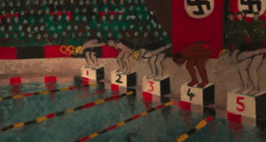 Butterfly is the perfect example of history colliding with art as Miailhe’s film explores the racism experienced by swimmer Alfred Nakache faced during the 1936 Berlin Olympics. One medium informs the other as the memories spill into one another. One of the most impressive aspect of Miailhe’s film is how the images transition from one another and how she uses depth of color when painting water. The water in a pool is different than water in an ocean, and she captures movement in a stunningly beautiful way. When we fully understand the history we are witnessing, Miailhe uses straight lines to represent oppression. The dividers in a pool become bars on a prison cell or the stripes of an Auschwitz camp uniform. In one chilling image, we see a crowd of people giving a Nazi salute: their faces are blank, but we never misunderstand the danger in their movement.