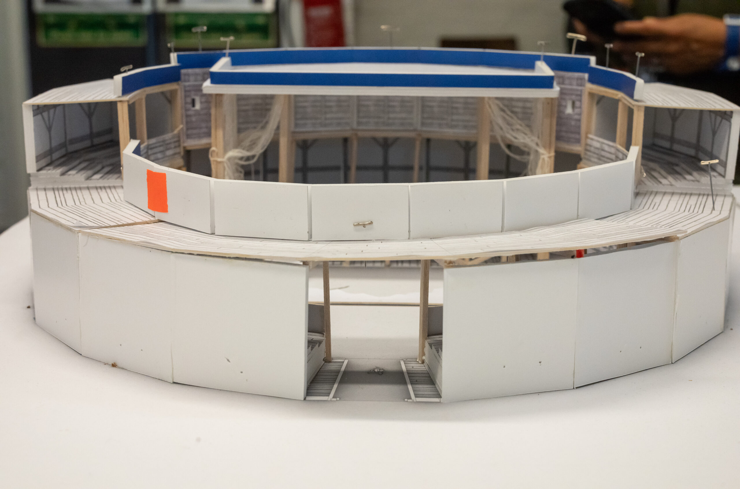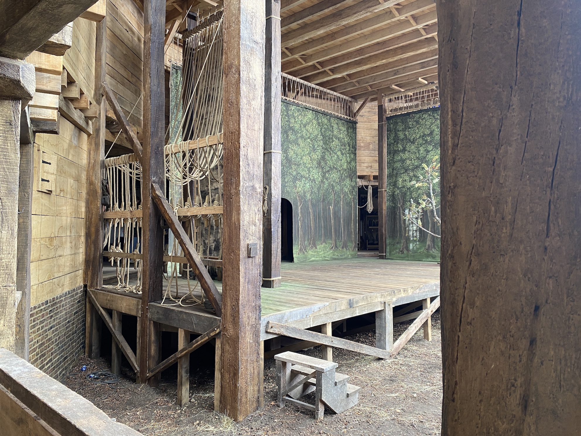 The Globe was our own interpretation. We used historical research as a foundation, but we allowed it to be slightly anachronistic. We incorporated elements inspired by the real Globe, as well as ideas drawn from prop storage, make-up areas, armoury spaces and places for actors to learn their lines. We also added small details, such as Bottom’s donkey head, which was loaned from the real Globe.