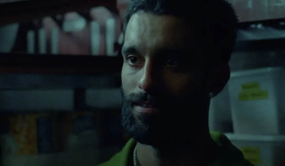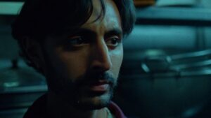 The takeaway itself doesn’t let you breathe. Men are shouting as we are passed around as orders are being filled, and we bounce about from the workers’ point of view to what it might be like to step in for a bite to eat. The editing on Hindman’s film, by Joseph Taylor, is a beast. What breaks through all that noise is the appearance of Zafar, his face illuminated by the takeaway’s neon lights in the window before he steps inside.