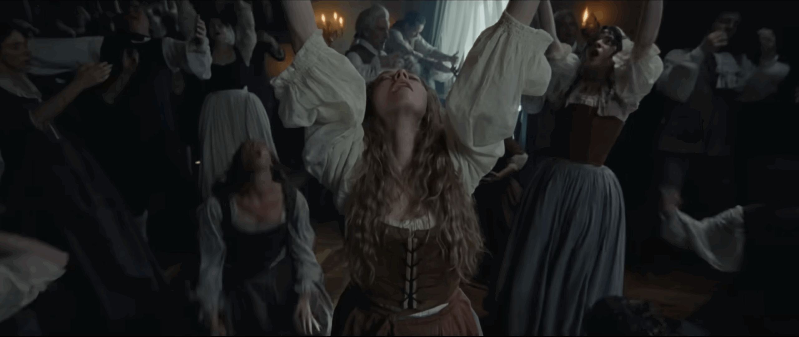Sofia Subercaseaux: There’s a progression that’s dictated by her internal world and the way she moves and connects to the music and dance. The dance sequences progress from the very first one, which is completely wild, rupturing and turning around, with people literally climbing the walls. Then you see the last one, which is a funeral, which is super restrained. Very small movements, very contained and very emotional, too, but it channels a different emotion. In between those two sequences, there’s a progression. No dance is crazier than the first dance, and no dance is more contained than the last one. There’s an arc. I think it is like a reflection. It’s in the way Mona and choreographer Celia Rowlson-Hall map the movement that reflects an inner arc for the character, too.