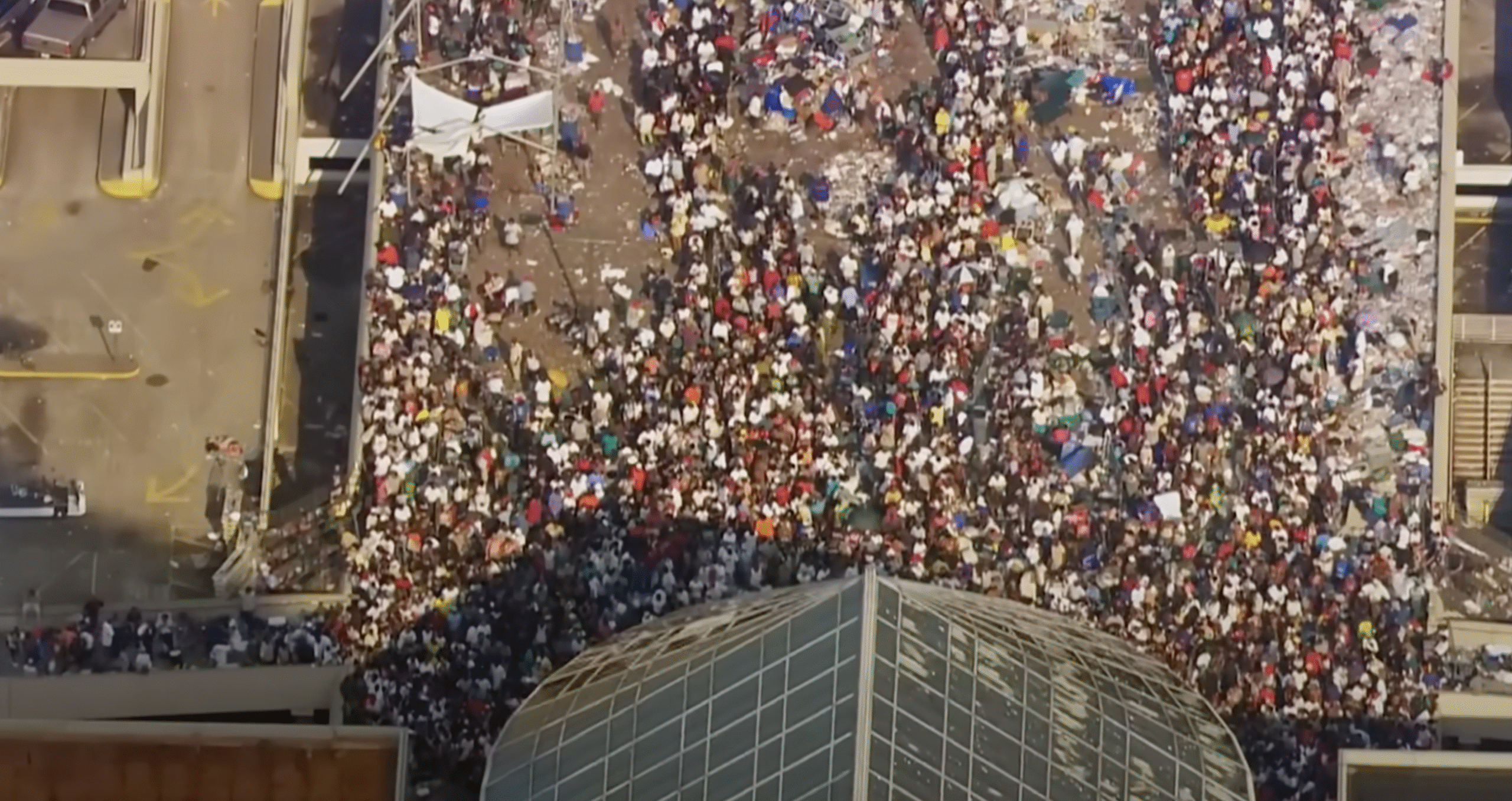 When the mandatory evacuation was called, Mayor Nagin told those who could not leave that the New Orleans Superdome would serve as “the shelter of last resort.” The Superdome may have been above water, but it presented as a hell of its own. The footage of people piling into the arena (after wading through sewage and snake-filled waters) by the thousands is something to behold. It’s made clear that there was no way that city police and the National Guard could be prepared for that level of influx.